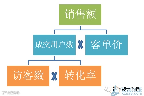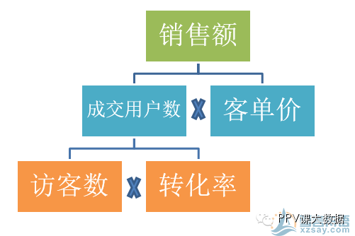 销售额=成交用户数*客单价,成交用户数又等于访客数*转化率。详见图c。