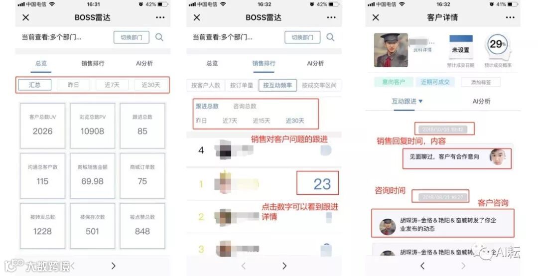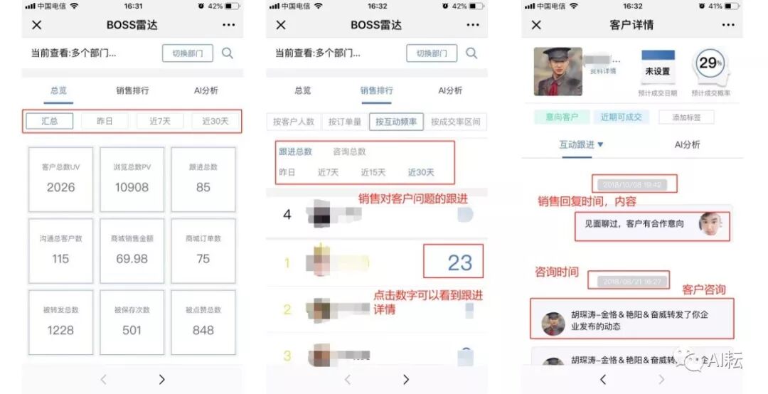 名片商城的客户浏览行为记录和BOSS雷达管理+企业微信外部联系人连通微信的完美方案了解一下。