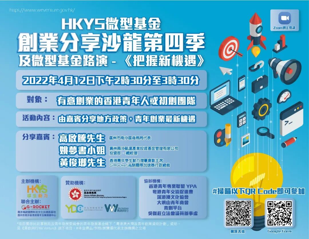 4月12日,由HKYS香港青年学生动力主办,广州市南沙区高诺国际科技文化加速器基地和广州市南沙区港澳青年五乐服务中心联合举办,香港特区政府民政事务局赞助的青年创业分享沙龙暨微型基金路演成功举办。