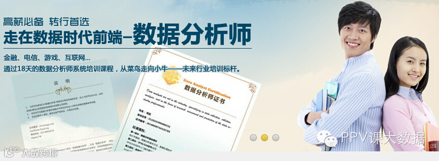 CDA数 据分析师系统培训,由人大经济论坛根据CDA协会认证标准而设立的一套针对数据分析师技能的全面系统培训。培训师资目前均来自学界、实务界相关领域的讲 师、教授、专家、工程师以及企业资深分析师,名师荟萃,代表了国内数据分析培训的最高水平,可以很好地保证培训的学员既能学到扎实的数据分析理论知识,又 能具备较强的利用软件解决实际问题的能力,保证学员能胜任各行业数据分析师工作的要求。CDA数据分析师培训注重结合实际,把最具技术含量、最具价值理念 的课程传授给学员。课程还注重启发式教学,让学员在解决问题的动手中去学习。