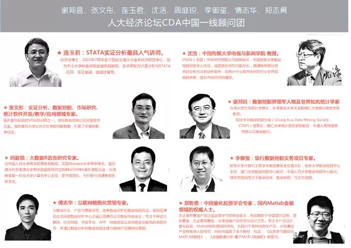 数据分析金牌团队:人大经济论坛数据处理和分析研究中心,各大高校著名教师以及知名企业资深数据分析师。 人大经济论坛数据处理和分析研究中心是人大经济论坛下属的研究机构,具有强大的统计计量和数据处理方面的实力,我们服务过的客户包括中国人民银行、世界银行、亚洲开发银行、各大高校研究机构、科研院所、公司和个人等,数据处理和分析的实践经验丰富、理论功底深厚。本 研究中心应用的解决数据处理和分析问题的工具包括. SAS、SPSS、MATLAB、Stata、EViews、Excel、Splus&R、Lingo、Maple、MATHEMATICA、 MATHCAD等。在对外承接数据处理业务的同时,我们也把实际数据处理的经验转化为课程,供广大有兴趣的会员朋友们学习使用