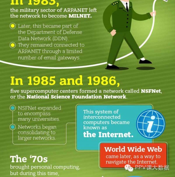 在互联网高速发展的今天你是否知道网络是怎么诞生的?也许同很多人一样你只是熟悉其中一个片段,那么有谁能够能够完全了解完整的发展故 事?WhoIsHostingThis?公司近日收集了六家机构对互联网诞生故事的所有数据,并通过整合和考证通过信息图的方式告诉我们完整的故事。