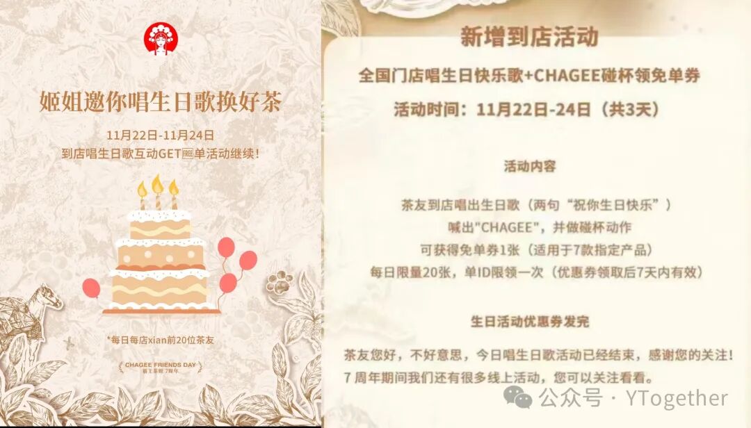 霸王茶姬唱生日歌免单