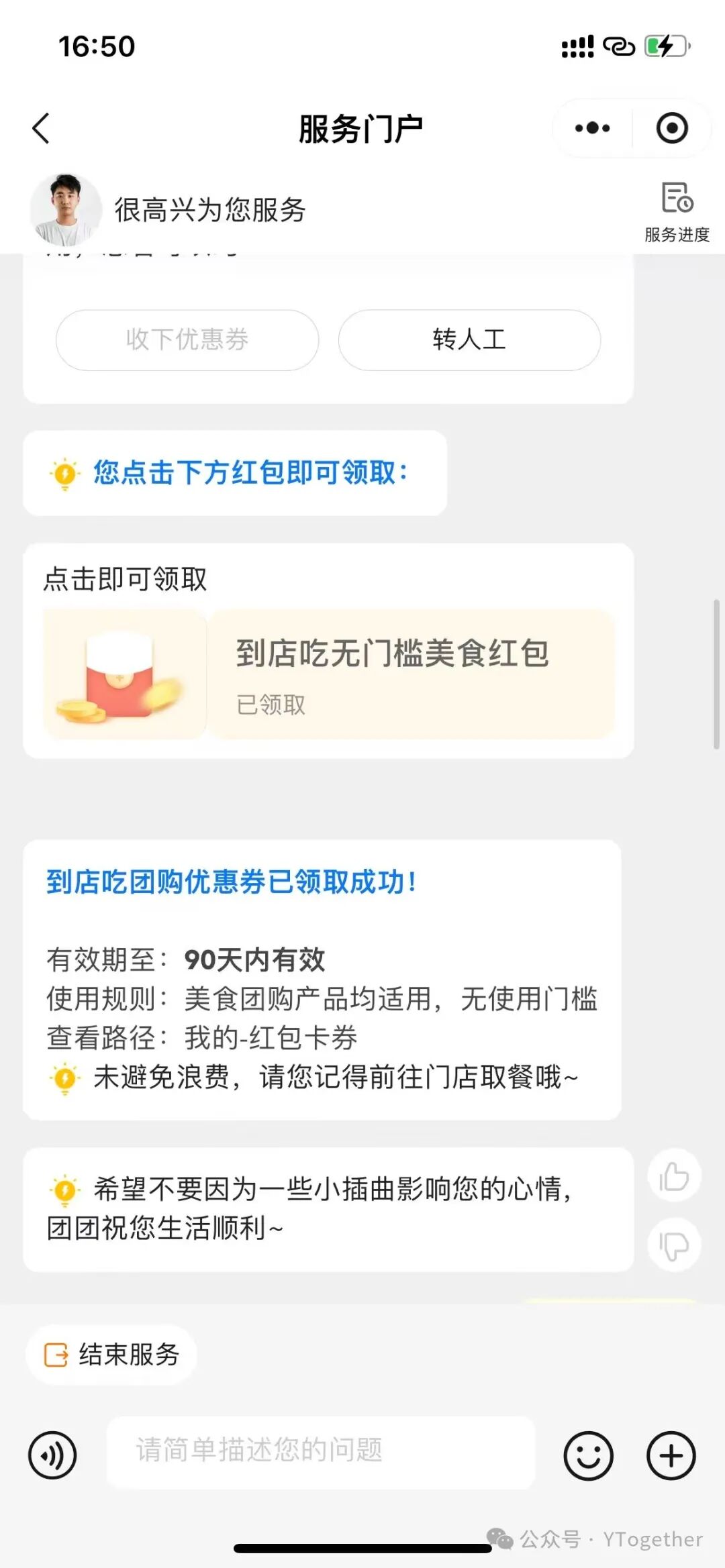 回来直接找客服,然后跟他说那个订单有误,并没有去线下核销订单让客服给你申请退款,然后客服会给你退一张10块钱的无门槛的券,作为补偿,直接收下!