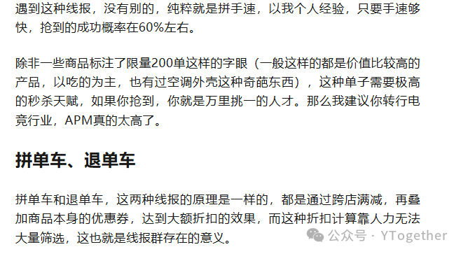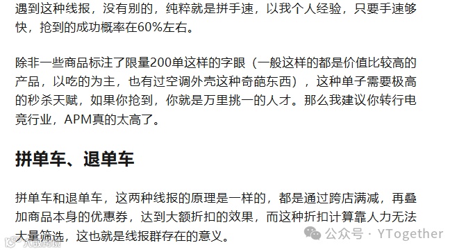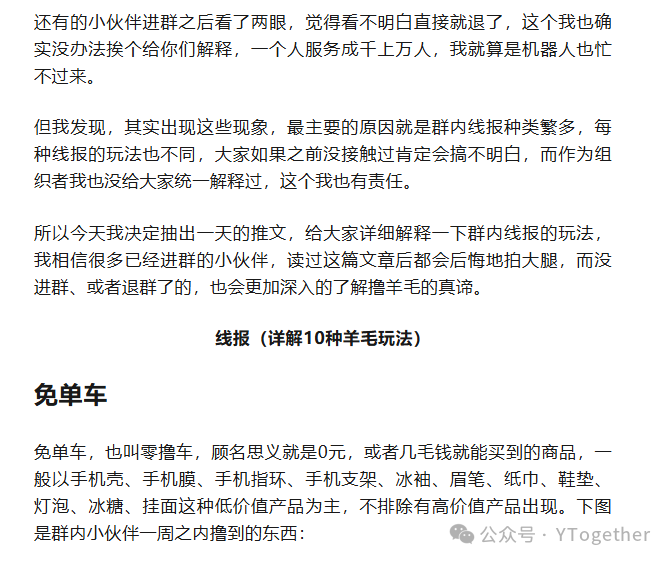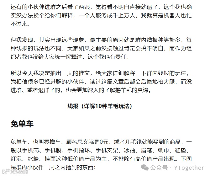 我发现,很多小伙伴对于群内的线报消息还是一头雾水,有的人在群里呆一天只会抢免单商品(后文我会解释这是什么),虽然看着一分钱不花,但是免费商品的价值也确实不高,都是纸巾、铅笔、橡皮这样的小肉单。而真正有价值的羊毛却从指缝间漏掉了,这样的做法完全就是在亵渎线报这个词!