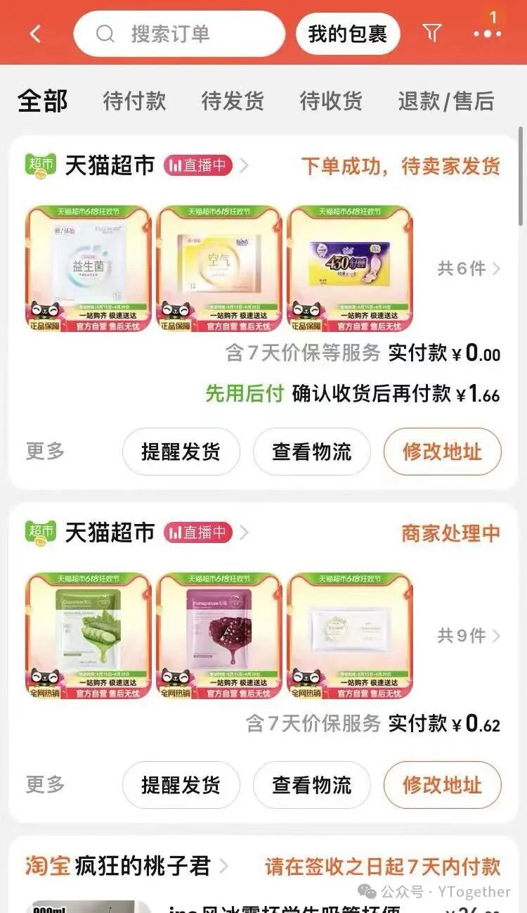 只要复制框里发出的信息,打开手淘,就会出现下面这个界面,抢到淘礼金,即可和优惠券一起抵扣,再加上群内各种菜鸟小红包、天猫小红包啥的,最终实现零撸效果。