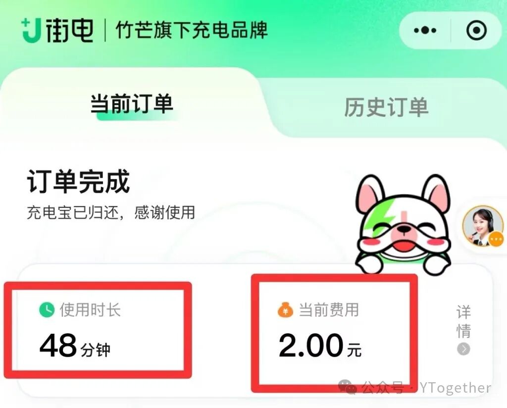 原本借了46分钟需要4元的充电宝,只需要支付2元并且拿到充电宝