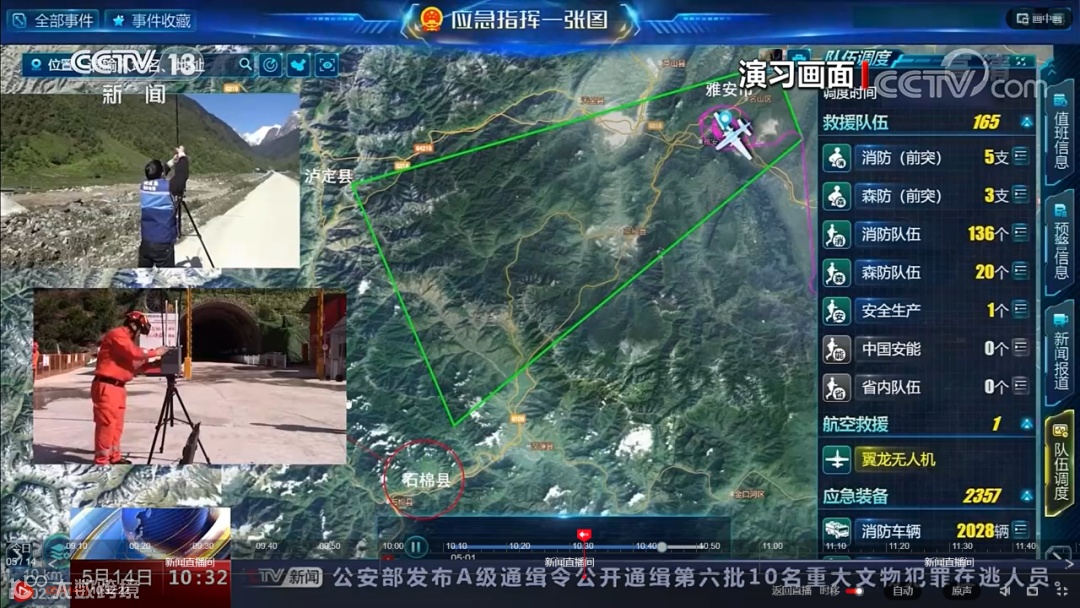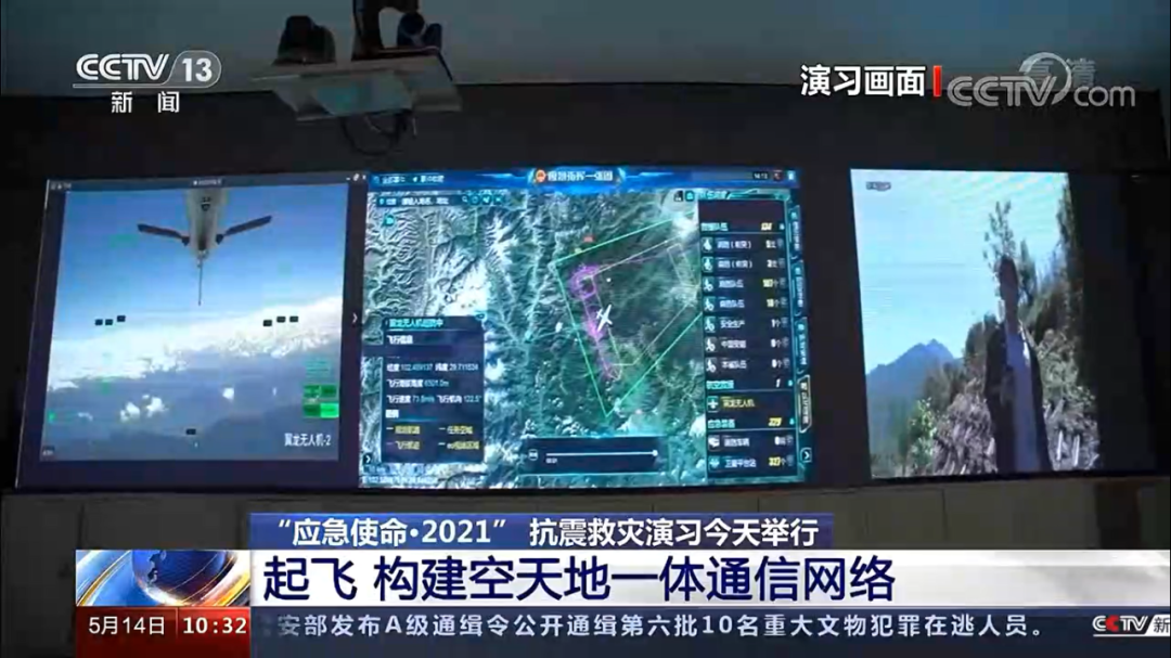 此次演习,在力量开进、应急通信、灾情侦察、现场救援、医疗救护等方面创新应用了一批新技术、新装备。在应急通信方面,现场构建了由通信卫星、翼龙无人机、宽带自组网设备、地面卫星便携站等组成的“空天地一体”应急通信系统,实现震区救援救灾全地域全时段通信畅通,解决了灾难现场断路断电断网的“三断”通信保障难题。