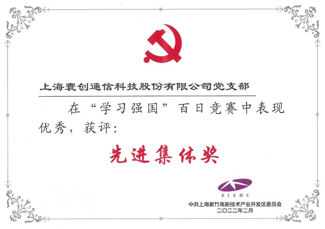 寰创通信荣获“学习强国”百日竞赛先进集体奖