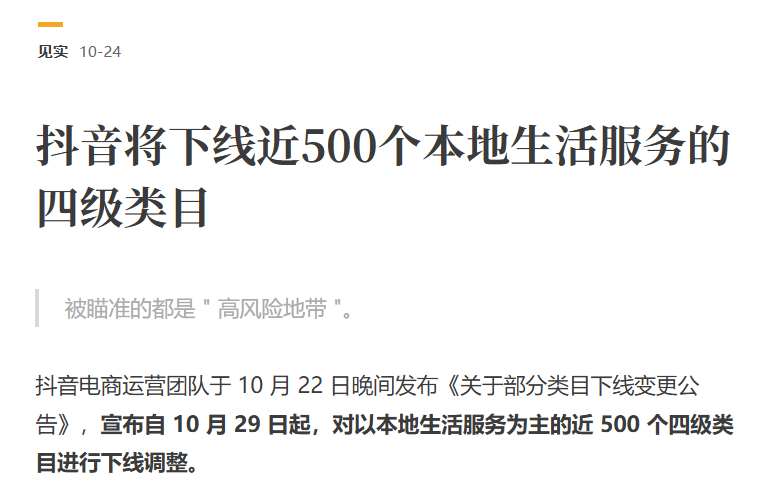 下线近500个高风险本地生活服务类目,聚焦履约闭环。