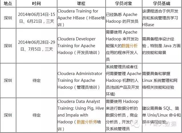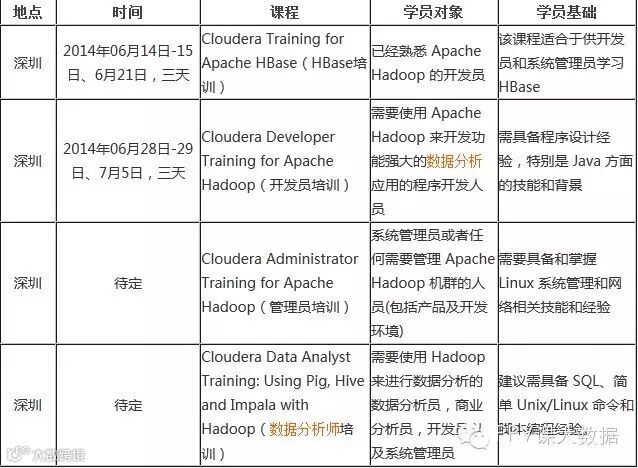 我们为国内大数据用户提供以下 Cloudera 培训课程,使用和Cloudera 在美相同的教材,练习和教学方式(原文教材和练习手册,中/英文讲解):