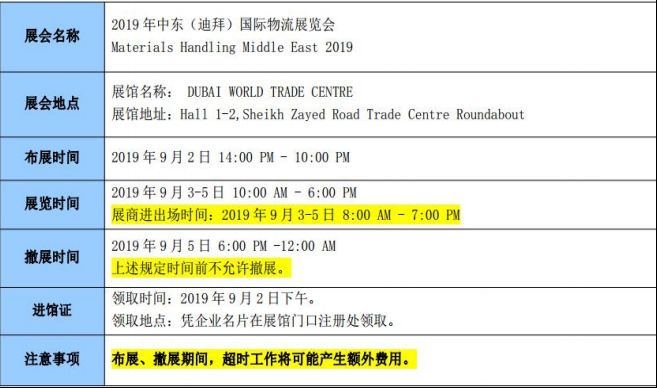 您好,欢迎您参加2019年中东(迪拜)国际物流展览会,为了使您顺利参展、方便您的出行,请您仔细阅读以下信息: