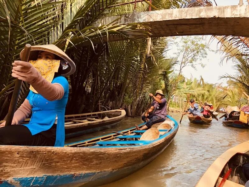 美拖位于美丽的湄公河三角洲,以盛产龙眼、芒果等水果闻名。美拖最精彩迷人的地方就是湄公河水上观光。搭上装着小马达的木船,一边眺望两岸的苍翠丛林,一边在湄公河滚滚河流中前进,一边和堆满了水果的小船交错而过,一边欣赏默默打渔的渔夫。一副悠游自在、与世隔绝的美景在眼前铺展开来。