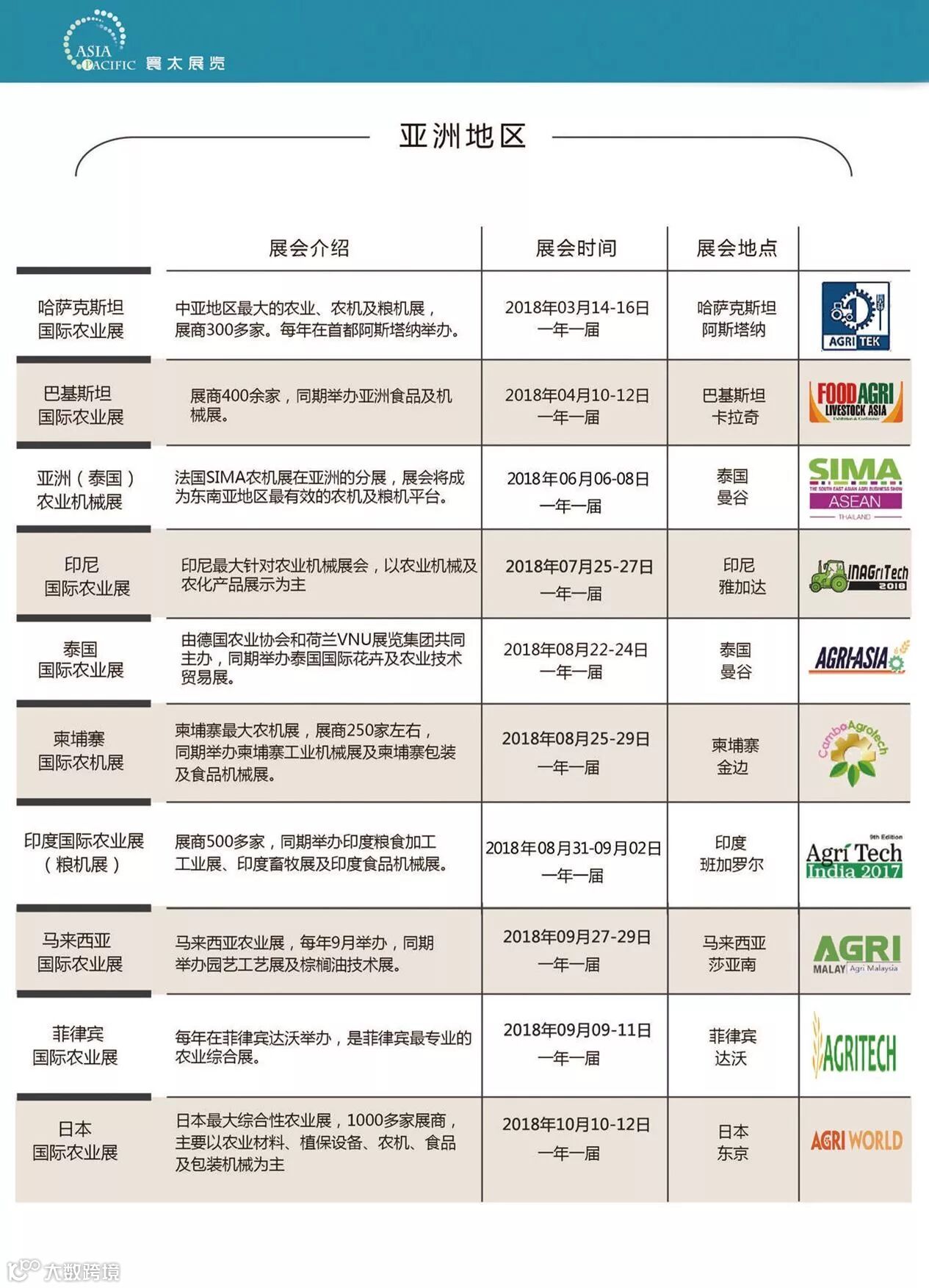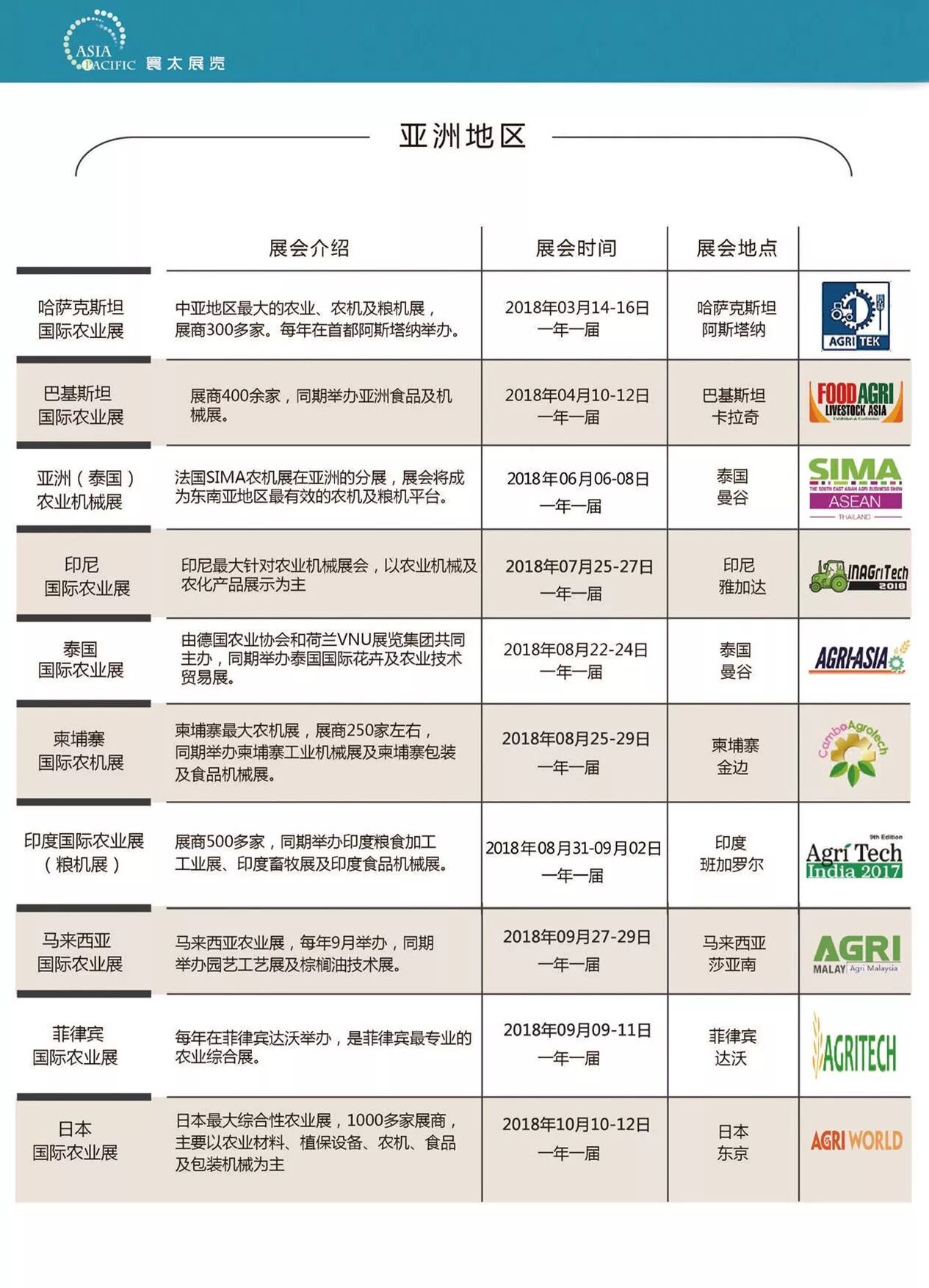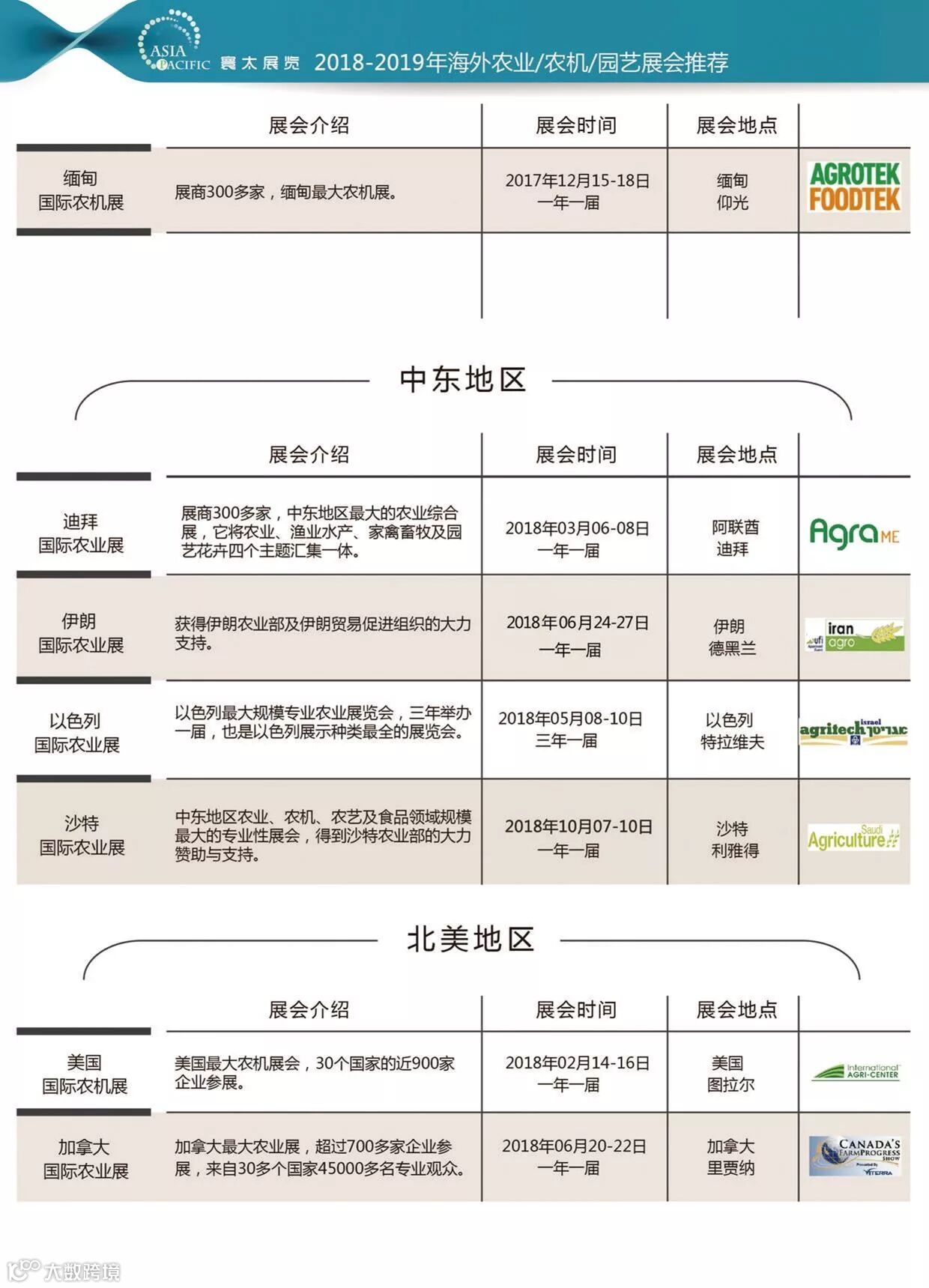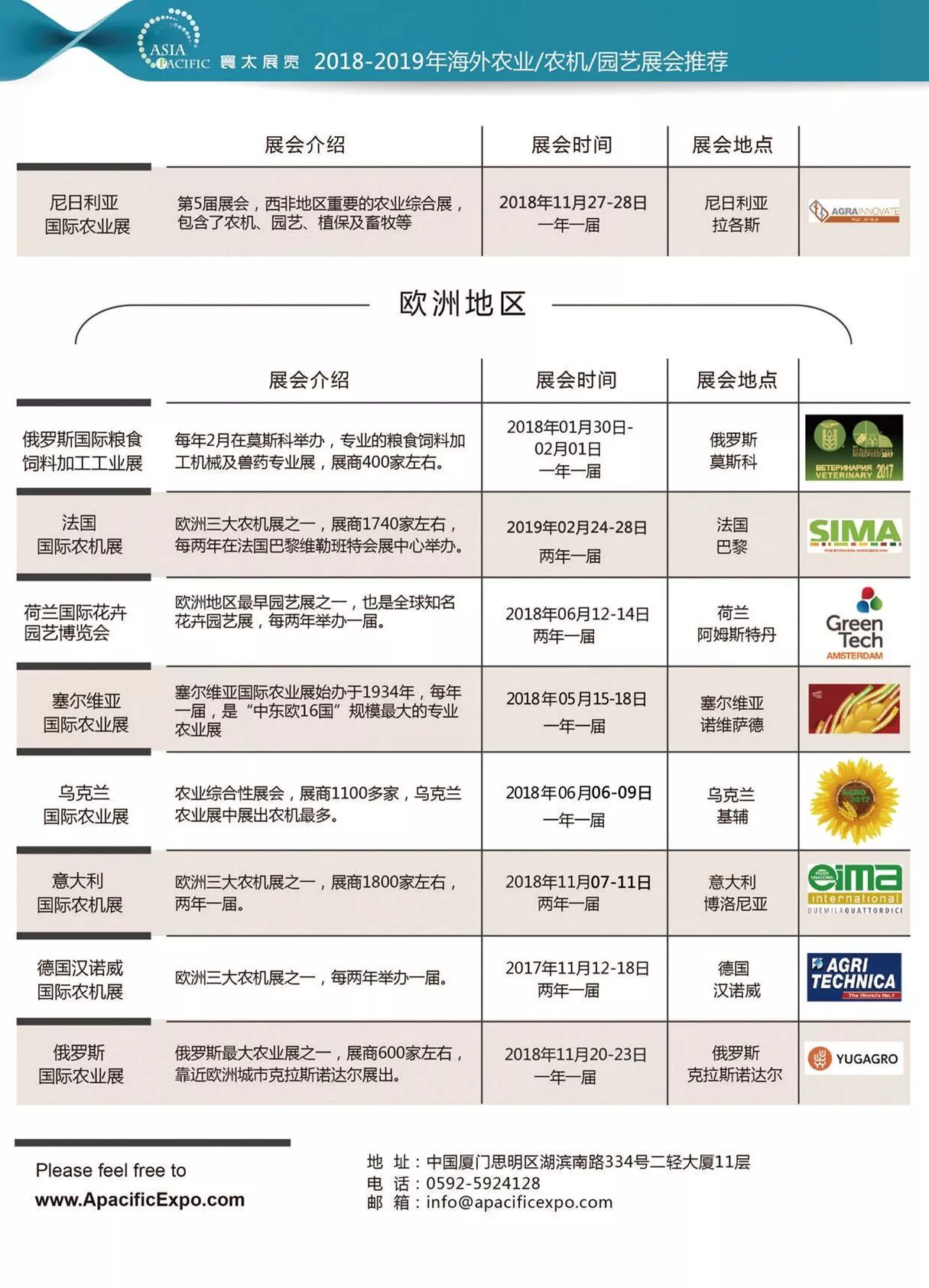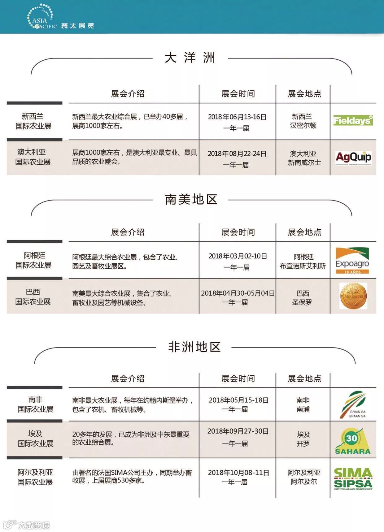 2018年展会列表陆续更新中,