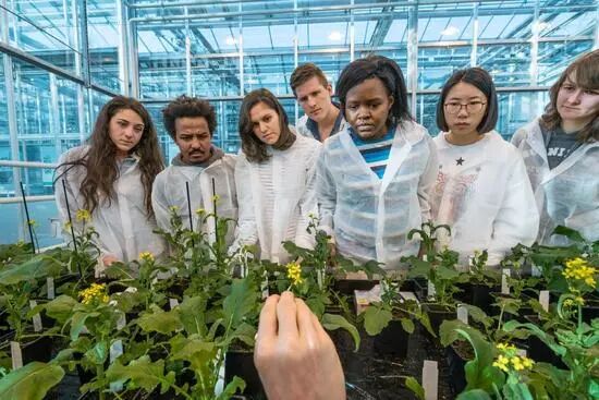 图10:学生穿着白色实验服检查植物。瓦格宁根大学与研究中心的教师和学生表示,知识是荷兰最有价值的出口产品,那里半数的研究生都来自其他国家,而有些国家面临着反复出现的饥荒威胁