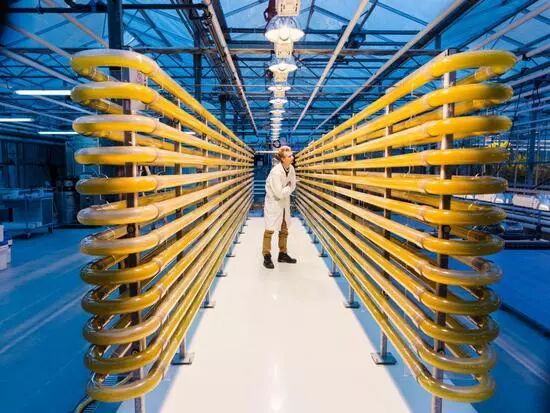 图9:在瓦格宁根大学和研究中心的AlgaePARC上,茹德·韦洛(Ruud Veloo)监测着实验“光生物反应器”。光促进微藻的生长,微藻则被用来产生蛋白质和脂质,这是许多食物链的基础。