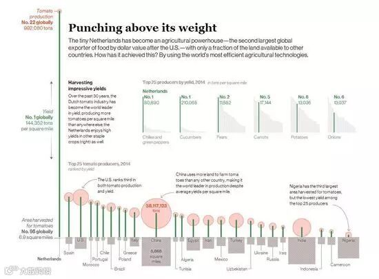 图7:小小的荷兰已成为全球第二大农业大国,其食品出口仅次于美国。而实际上,荷兰可用农业耕地只是其他国家的一小部分。它是如何做到这一点的?通过使用世界上最高效的农业技术。