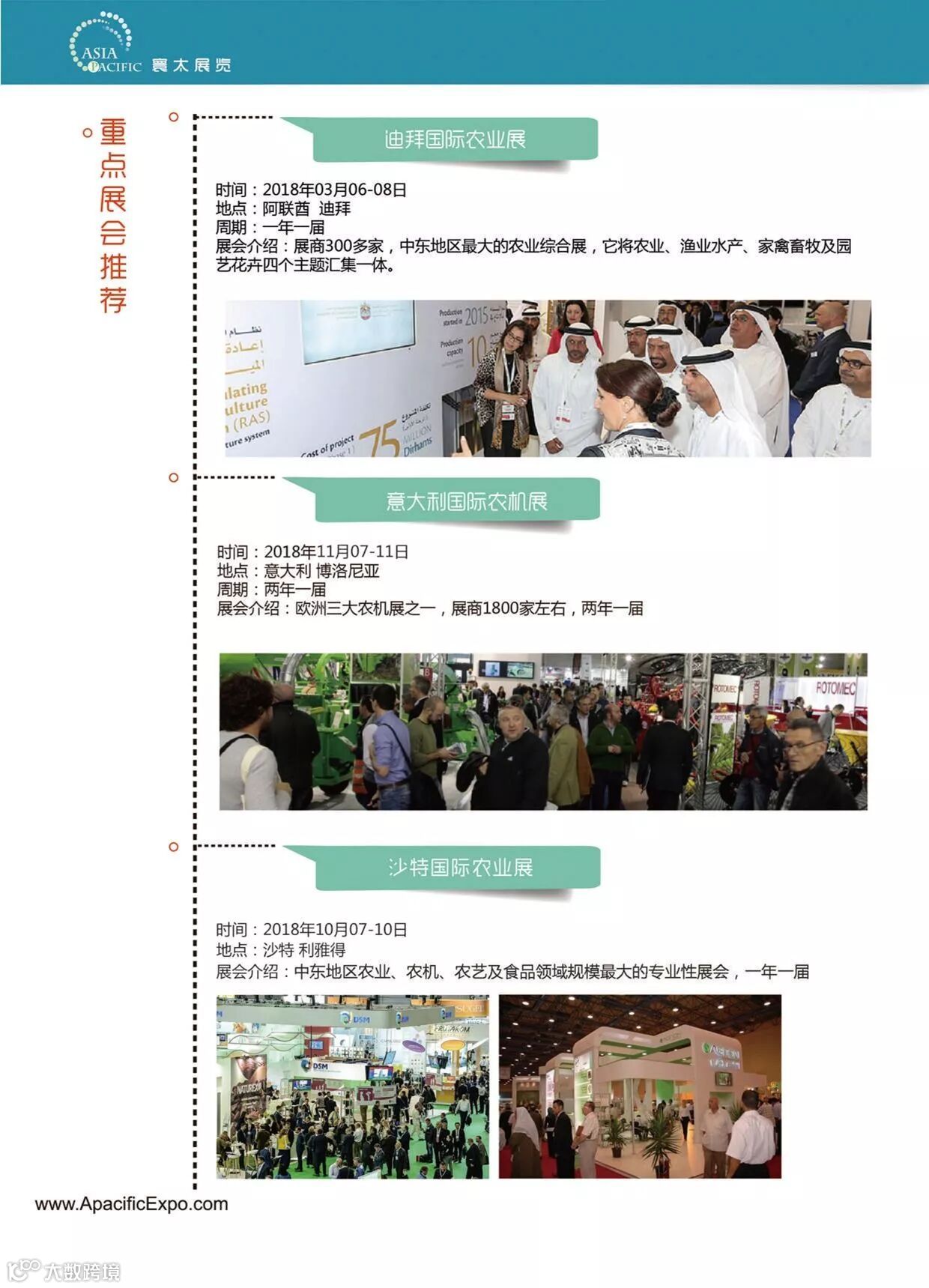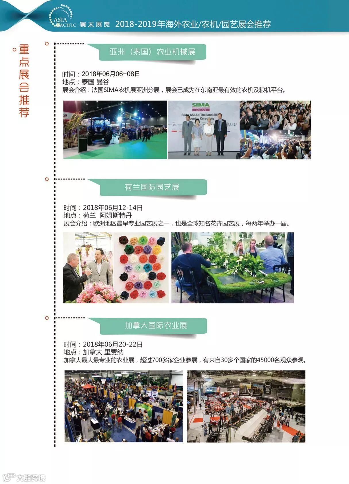 感谢关注寰太国际展览,我们专注于将中国制造商和供应商带入到中国市场以外的农业、农机、园林及畜牧类国际展会,并介绍给客户新的出口机会。寰太公司将为中国企业海外参展参观提供全方位的出展服务。