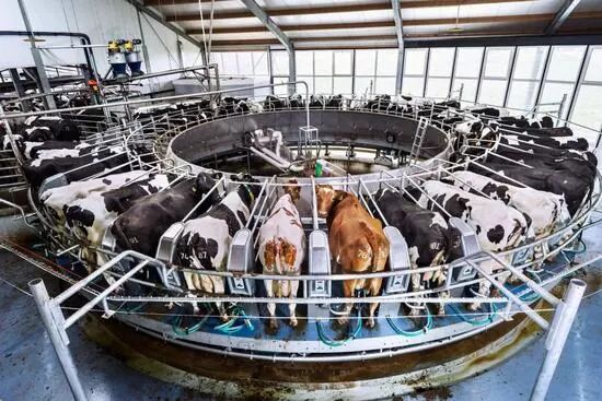 图5:在瓦格宁根大学的牛奶场,这样的旋转挤奶机可以让操作员1小时内为150头奶牛挤奶。这里的研究人员正寻求在人口密集的荷兰解决奶牛养殖所带来的挑战。