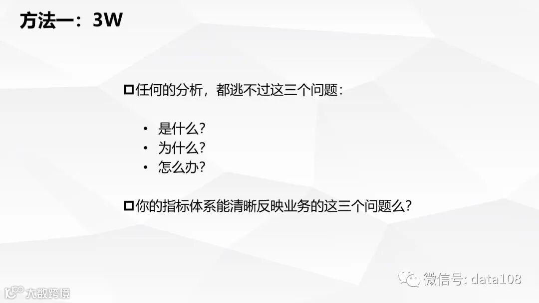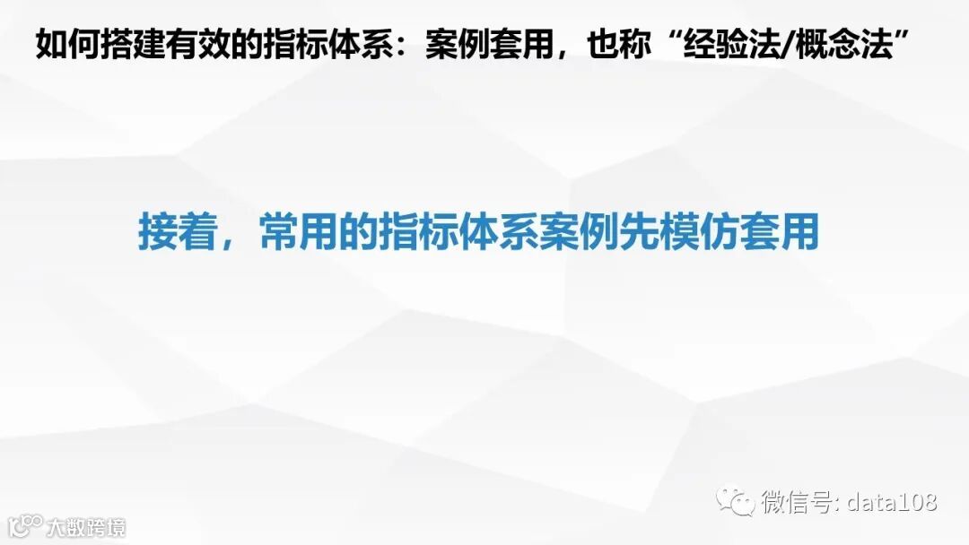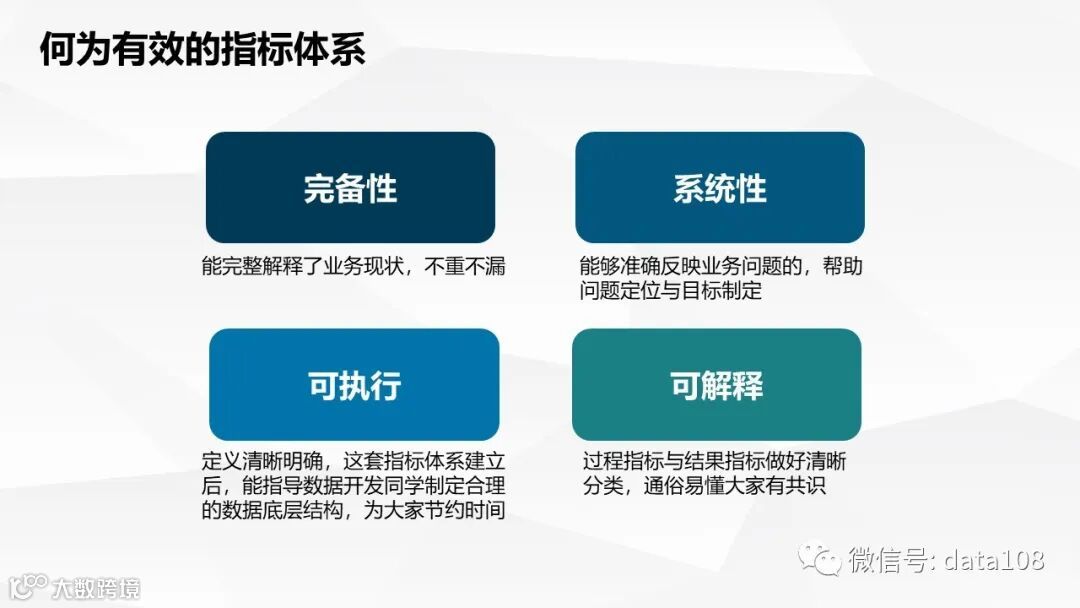 好指标的特征:计算简单快速,易理解,对业务敏感,可持续(口径稳定,长期可用)