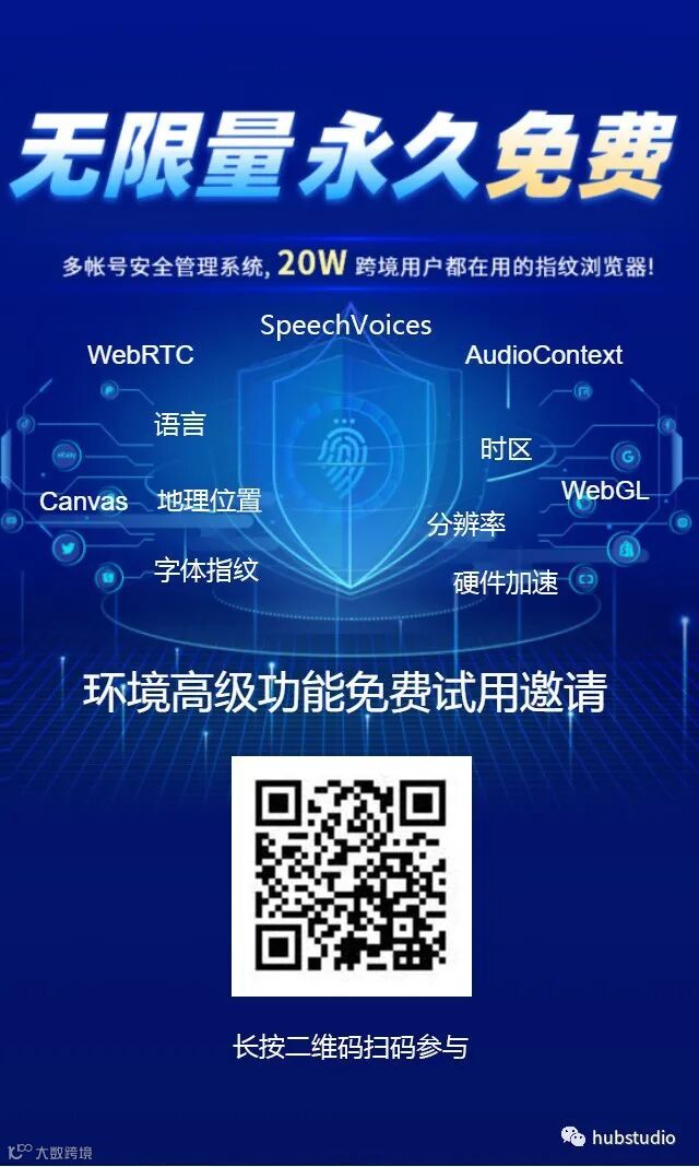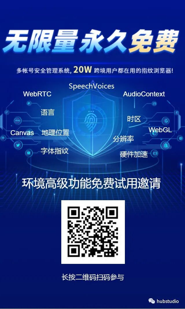 hubstudio又一次实现新突破,使用用户突破20w,非常感谢我们的客户不断给到我们提供反馈,我们的才能不断的进化和打磨我们的产品。2022年的520来了!这个充满爱的日子来了!官方为感谢我们客户,准备了一份520超级大礼包——环境参数的高级设置功能,接下来我给大家介绍下高级功能都是什么意思,以及如何使用,避免大家出现设置错误导致的帐号安全问题,文章最后有扫描二维码免费报名使用高级功能哦,欢迎大家报名体验。