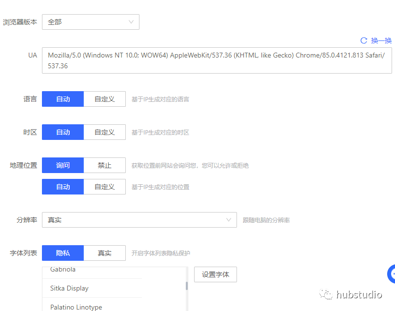 注意:字体指纹会受到字体列表的影响,设置时需要两个参数共同调整才能有效果。