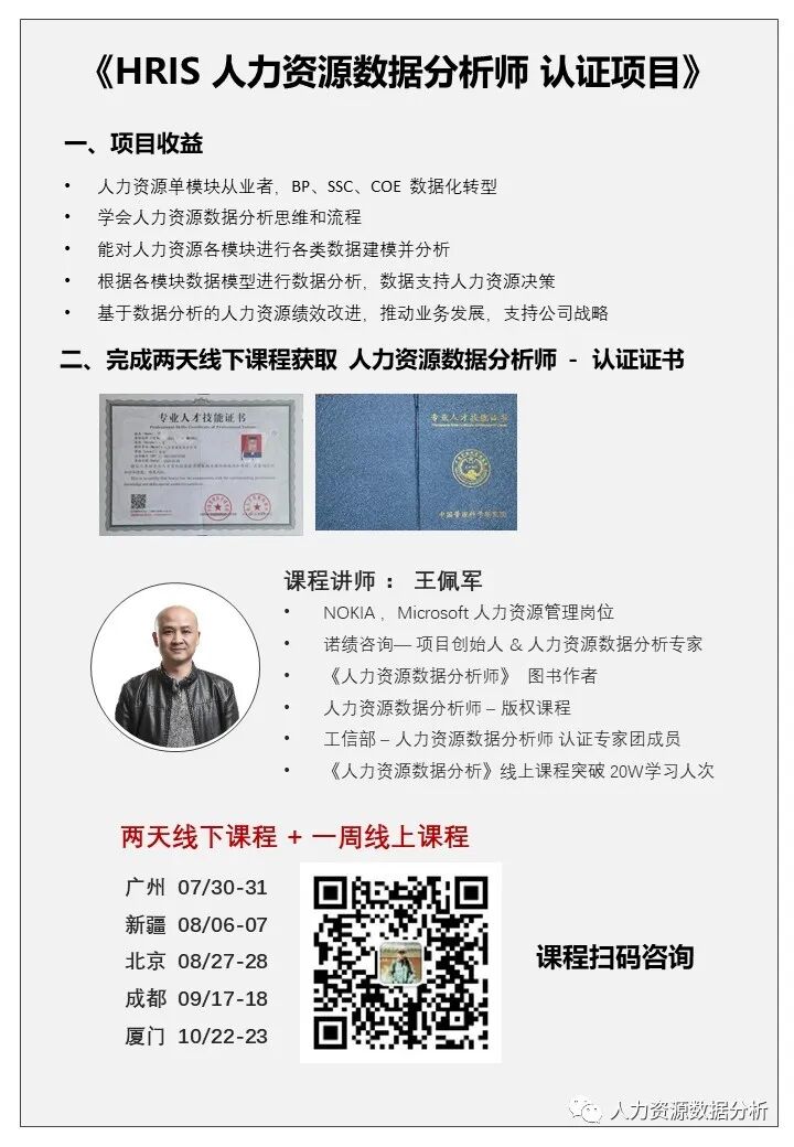 系统的学习人力资源数据分析技能,提升人力资源数据分析思维,欢迎参加 《HRIS 人力资源数据分析师 认证课程项目》