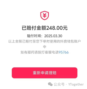 俗称抖音极速赔付,上车到下车不用两小时,目前是100%下赔付,相当于是一比一赔付,买200赔付200,这期文章会动很多的人蛋糕,所以认真阅读,看完转发点赞