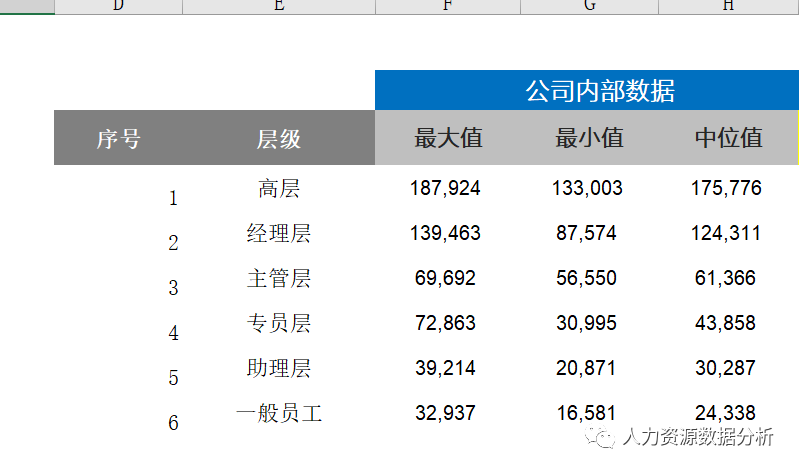 薪酬数据表如何自动计算关联各层级中位值和最大最小值