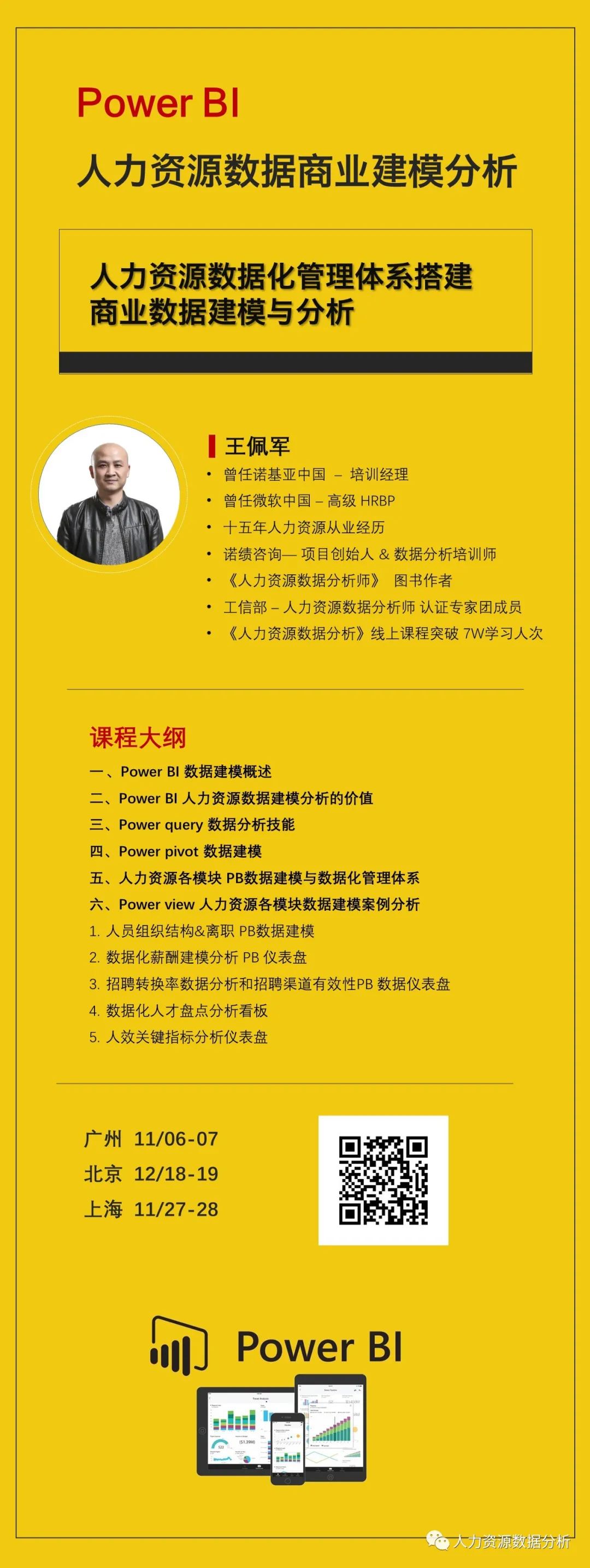 想要学习POWER BI 建立人力资源的数据分析体系,欢迎参加我们线下的《POWER BI 人力资源数据分析建模和分析》课程,帮助企业实现人力资源的数据化转型。