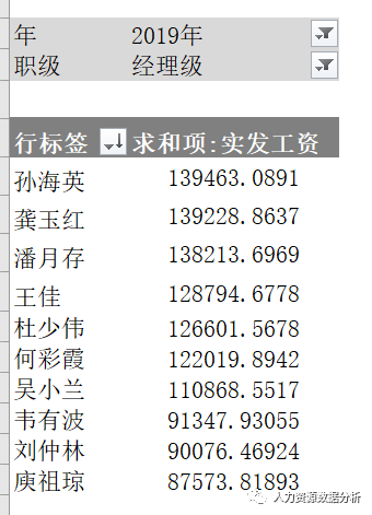 但是在EXCEL中用这种方法会存在一种问题,就是当薪酬表格中人员数量进行变化后,各个层级的人数就会相应的进行改变,我们在取函数的时候,在范围选择中,都是通过数据透视表来选择数据的范围,凡是一旦人员的数量做了改变,每个层级的人员数量也会改变,那函数的数据选择范围就需要重新选择,在EXCEL中做薪酬的这个分析就相对比较麻烦。