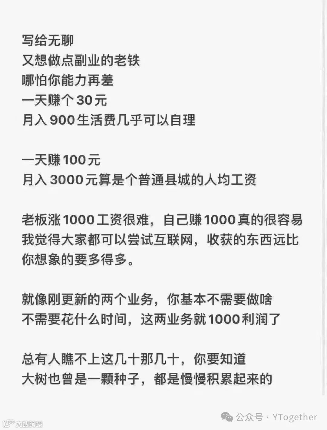 玩羊毛我们真的很专业,请放心入群。不断更,不恶意引流 k头 如果你付了钱进群感觉群不值这个价。2天内包退款!