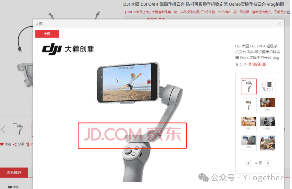 第一步:打开京东,点击你想要的图片,清楚的看见中间的京东大水印。