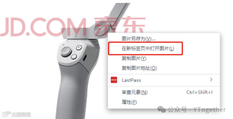 打开京东,点击你想要的图片,清楚的看见中间的京东大水印。第二步:点击拖动图片到网页顶部,或者鼠标右键 在新标签页中打开图片