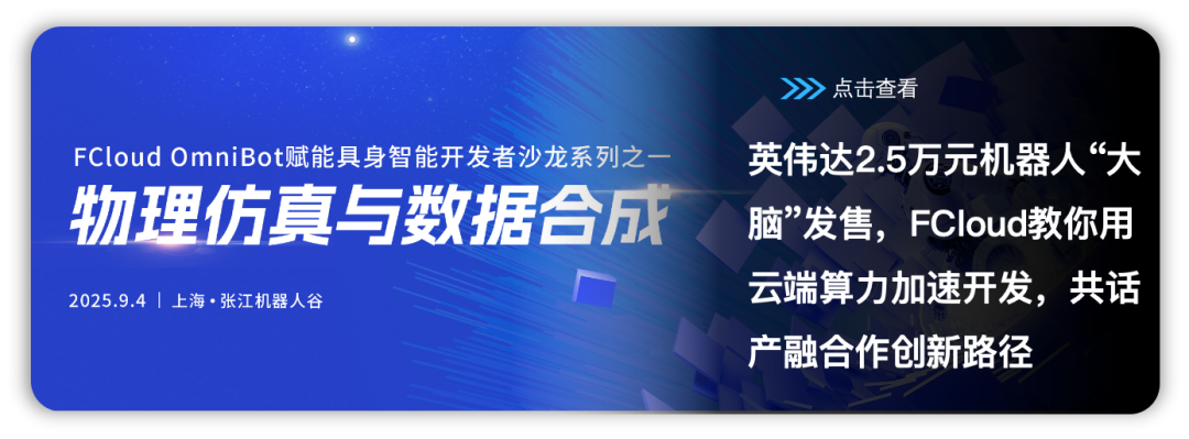亲爱的开发者们,距离FCloud OmniBot 赋能具身智能开发者沙龙之 “物理仿真与数据合成” 活动,仅剩 2 天!这场聚焦具身智能前沿技术的盛宴,即将于 2025 年 9 月 4 日(周四)13:00 - 16:30,在上海・张江机器人谷展厅 3 楼拉开帷幕。