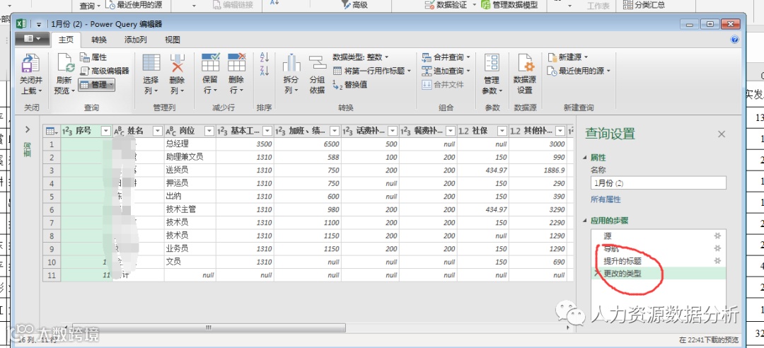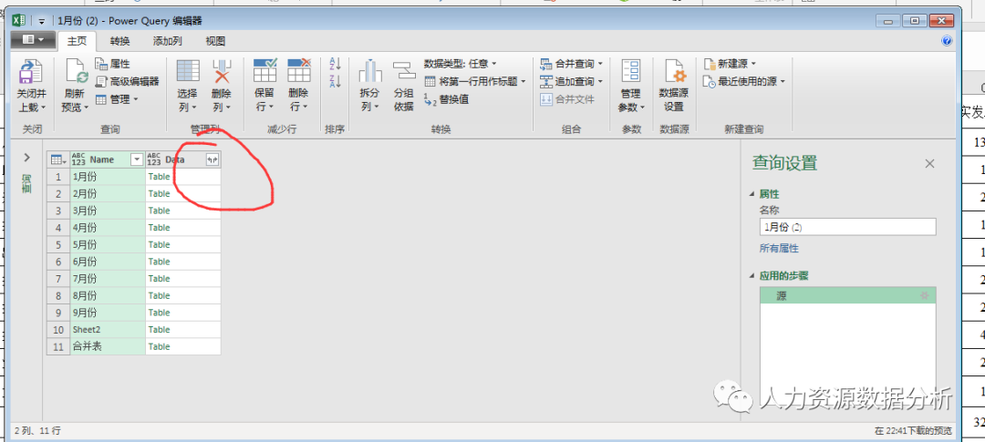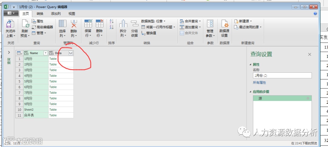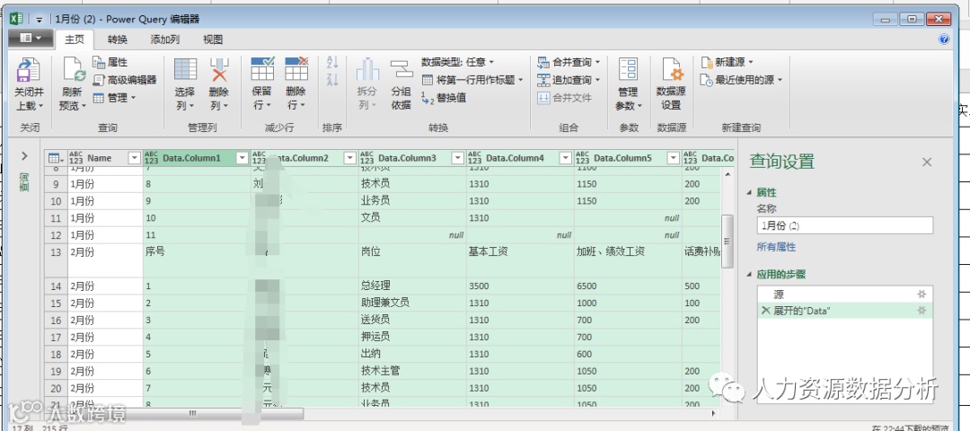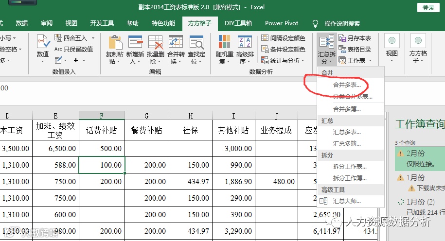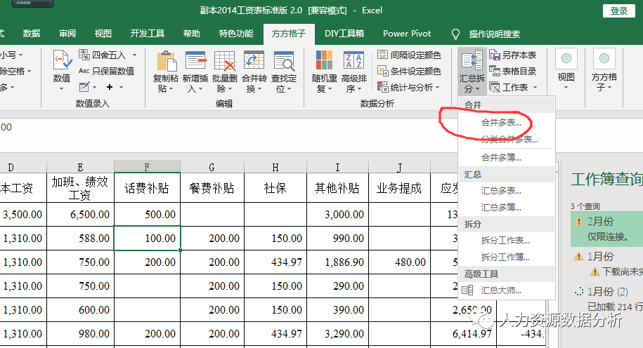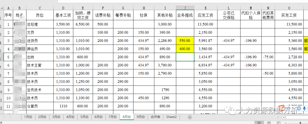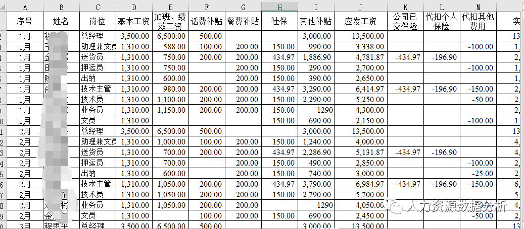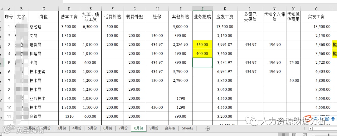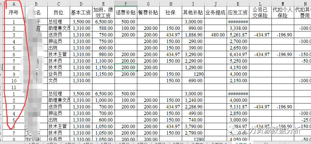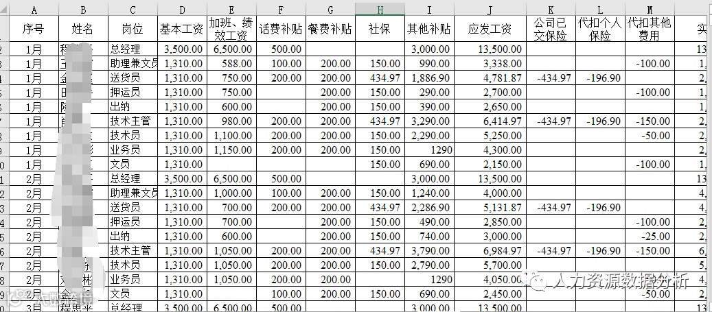 总共有10个月的薪酬数据报表在一个表格里,我们做薪酬数据分析的时候,因为要去做数透,所以需要对这些数据表格做合并