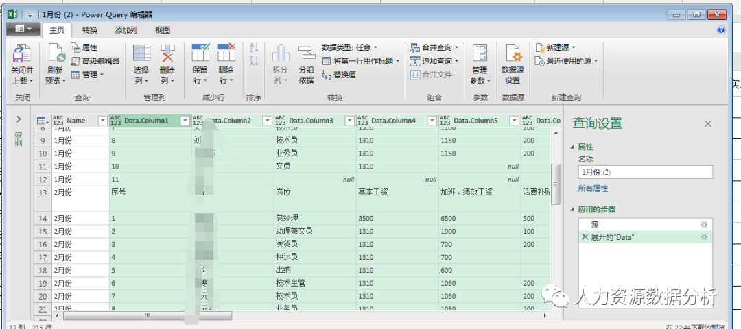 我们在做薪酬的数据分析的时候,往往需要把原始的每个月薪酬数据表格汇总到一张的年度的薪酬数据表里,这个时候我们如果用比较传统的方法,就是一张一张的进行复制粘贴,就会麻烦,今天我们来介绍几个快速报表合并的技能