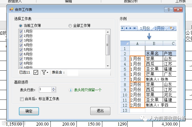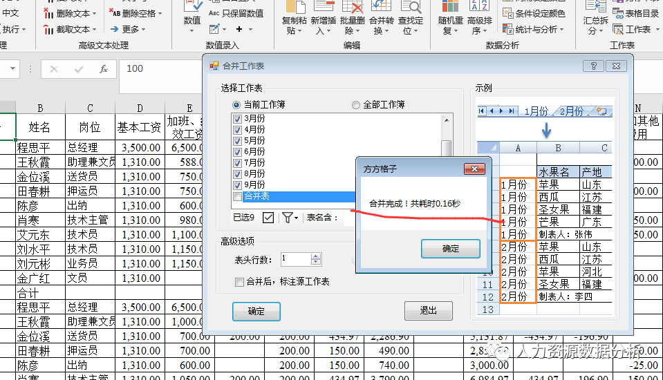 用了0.16秒就合并好了,然后你要做的就是把序号改成月份就可以了,通过插件快速的解决了我们报表合并。