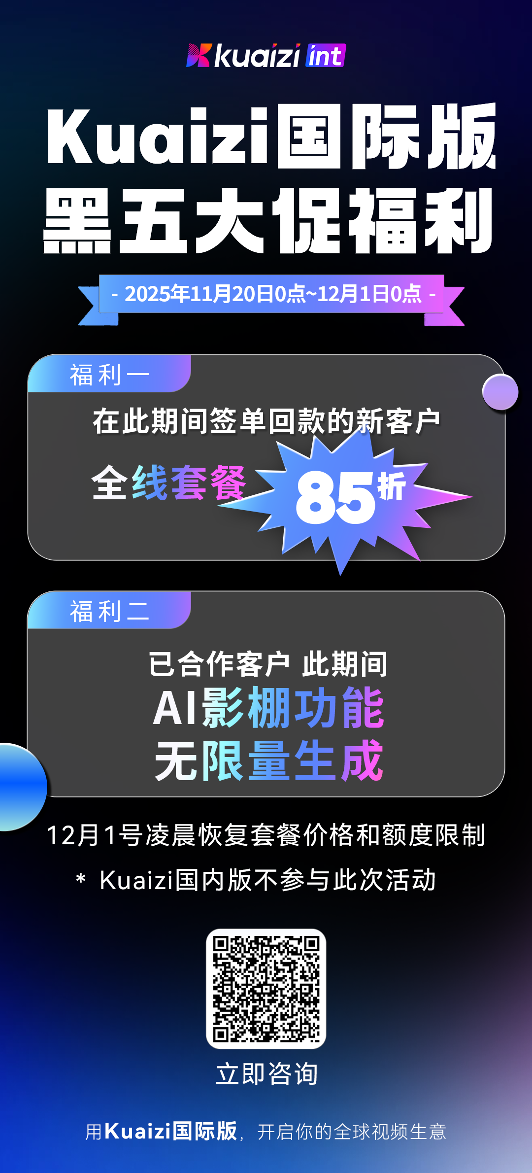 无论是跨境卖家还是本土品牌,都能通过Kuaizi国际版快速扩充素材库、提升账号活跃度、强化多账号矩阵分发,在黑五周期实现超车。
