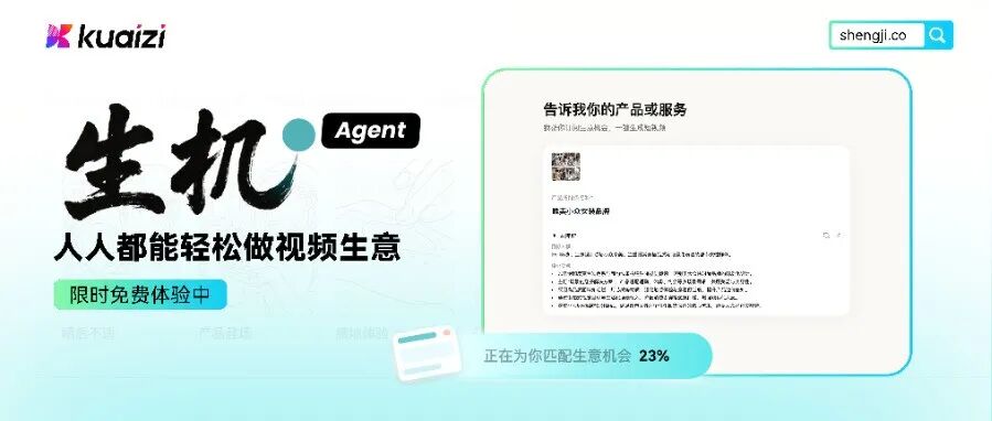 全新生机Agent,让每个人都能轻松做视频生意!限时免费体验中!
