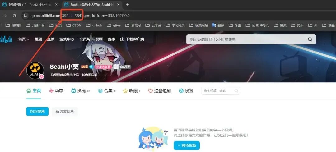 打开自己的B站主页,在个人中心(点击自己头像进入)的网址中获取UID,如: