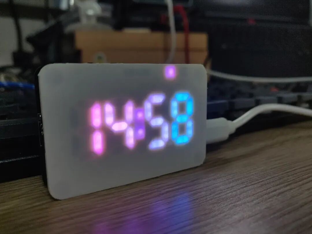 WB2-HoloCore 本质上是一个物联网时钟,不同于之前的数码管显示方案,WB2-HoloCore采用 WS2812 灯珠组成了全彩的数码管,能够展现非常好看的炫彩效果。