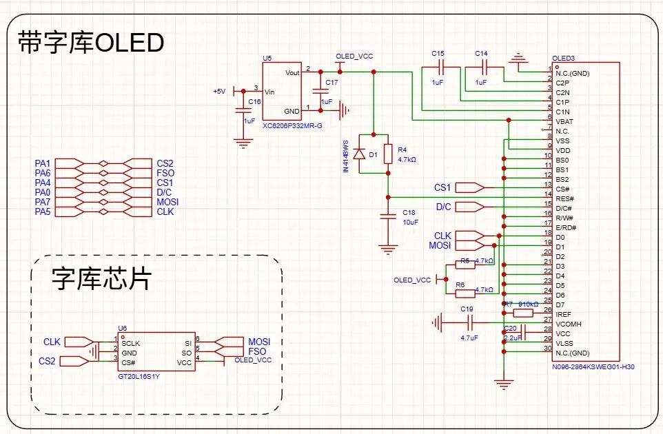 本项目最复杂的电路只有 OLED 的驱动电路,根据提供的规格设计就行。