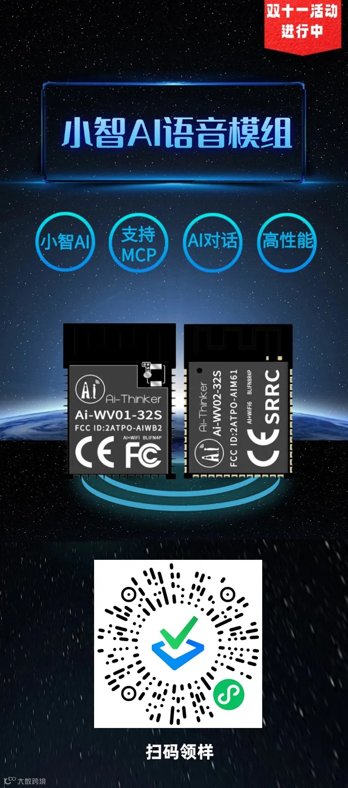 这次评测的是安信可科技出品的Ai-WV01-32S的小智AI语音模组。