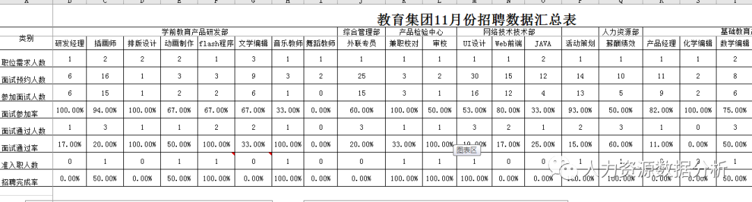 前几天收到一个小伙伴发的 关于月度的招聘的数据分析的表格,想帮忙看看要怎么修改,今天我们就来讲讲这个案例,我们首先来看看原始数据