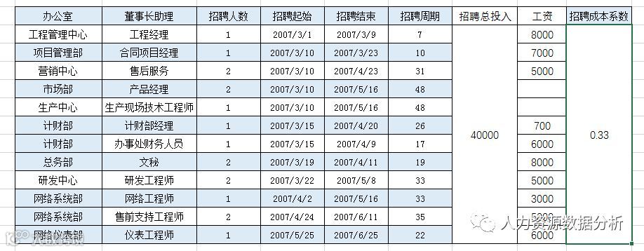在做年度数据分析的时候,我们在做找的数据分析的时候,都会去做一个年度的岗位的平均招聘成本的分析,因为这个分析可以做为来年岗位招聘的费用的参考,也是可以衡量岗位招聘有效率的一个指标。