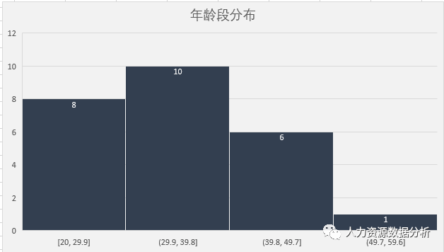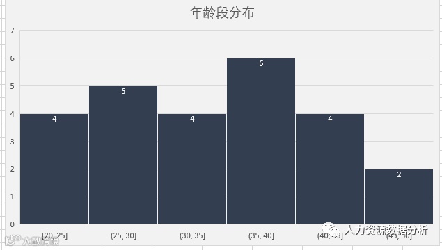 我们可以看到35-40岁的有6个人做多了,45-50岁的只有2个人,所有这种就不需要用数据透视表,也可以完成人员结构的分组分析!