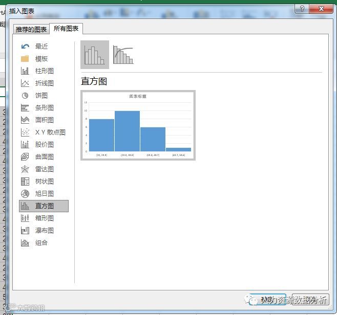 在2013版本的EXCEL里新增加了直方图这个新的图表,所以如果要实现以上的需求,我们不需要再做数据透视图了,直接用直方图就可以呈现上述我们想要的效果,看下图: