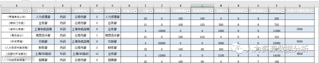 在通过部门去做培训分析的时候,一定要注意一点,就是有些课程可能是多个部门混合在一起上的,所以这个时候你要去拆分这类的培训课程,不然会出现分析的误差。