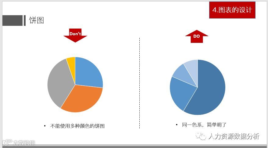 在我们日常的一些数据分析和数据呈现中,饼图是最常见的一种图,饼图也是代表成分关系的一种图表,但是往往最简单的图表,在设计的时候往往却做的最不好,今天和大家分享几张在以前《商务图表设计》的课程中讲授饼图设计的几页PPT,大家如果能按照PPT里的原则去设计饼图,一样可以做出好看的,并且能清晰的表达数据的图表。